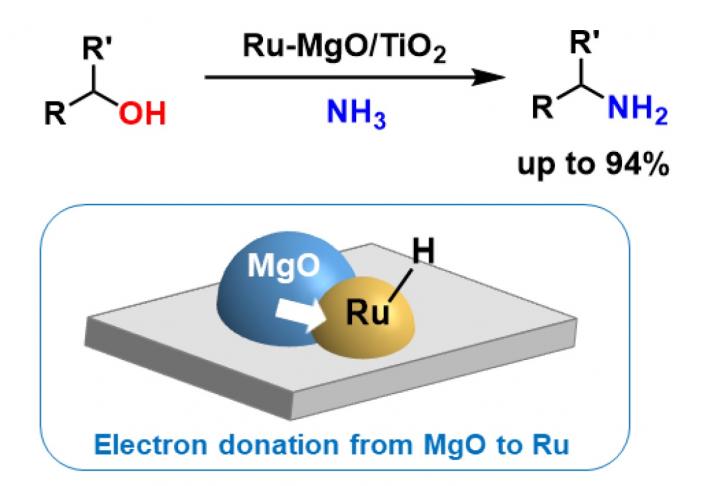 Now, researchers at Tokyo Tech report a heterogeneous[1] ruthenium-based catalyst (Ru-MgO/TiO2) capable of driving direct amination[2] of alcohols to produce primary amines without having to introduce hydrogen gas. They showed that the catalyst works at low temperatures, of around 100°C. The ready availability of alcohols and low cost of ammonia make the system both cost-effective and environmentally friendly.