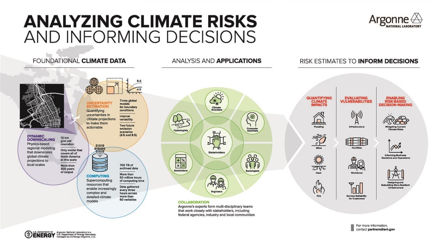 By helping AT&T — one of America’s largest telecommunications, media and technology companies — understand climate change risks at a national level, Argonne is helping the company better ensure the resilience of its U.S. infrastructure. Hazards vary from coast to coast, region to region and even neighborhood to neighborhood, making it difficult for stakeholders in industry, agriculture and governments to understand how to adapt. Insights from the laboratory can help them make data-driven decisions to manage risk.