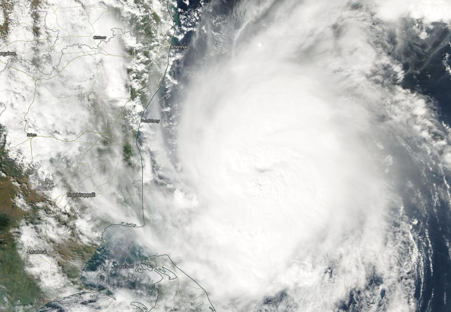 Credit: NASA Worldview, Earth Observing System Data and Information System (EOSDIS) Tropical Cyclone Gaja continued to organize in the Bay...