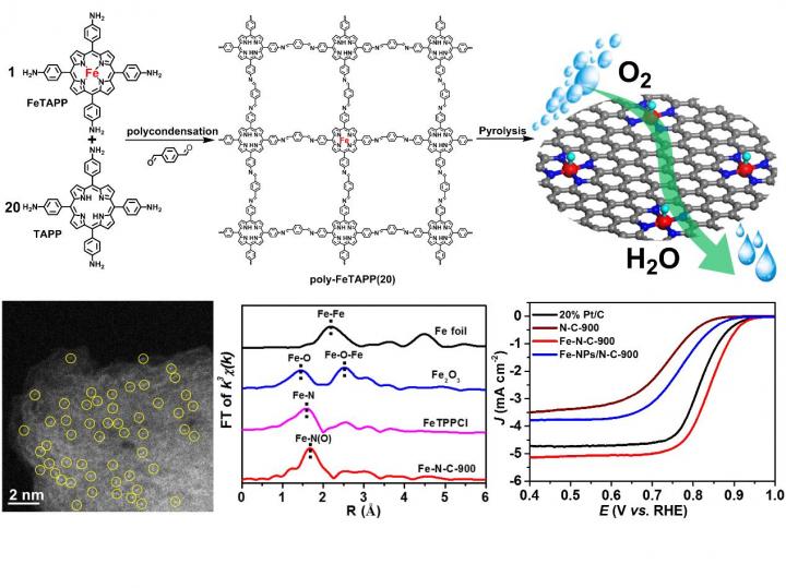 See the article: He Q, Meng Y, Zhang H, Zhang Y, Sun Q, Gan T, Xiao H, He X, Ji H. Amino-metalloporphyrin polymer derived Fe single atom catalysts for highly efficient oxygen reduction reaction. Sci. China Chem., 2019, DOI: 10.1007/s11426-019-9703-7.