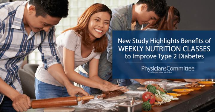 Researchers from the Physicians Committee for Responsible Medicine set up a study in a private endocrinology office in Washington, D.C. After working hours, the researchers put the waiting room chairs in a circle and conducted free nutrition classes for diabetes patients. Although the patients' diabetes was generally well-controlled at the outset, the classes significantly improved their weight, blood sugars, and cholesterol levels.